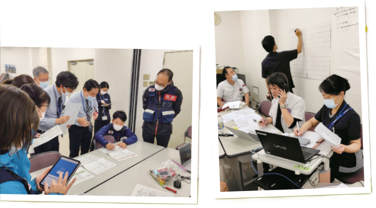 初めに「DMAT」とは、災害派遣医療チームDisaster Medical Assistance Teamの頭文字をとって略して「DMAT(ディーマット)」と呼ばれています。医師、看護師、業務調整員(医師・看護師以外の医療職及び事務職員)で構成され、大規模災害などの現場に、急性期(おおむね48時間以内)から活動できる機動性を持った、専門的な訓練を受けた医療チームです。当院では、21日は発災時に院内の災害対策本部の立ち上げ訓練を行い、22日は透析センターを中心に被災状況をDMAT対策本部に報告し、DMAT隊が当院に駆け付け、状況に応じて患者さんを他病院に転送するなどの訓練を行いました。様々な状況を想定して院内スタッフやDMAT隊と話し合うことで、災害意識を高めることができました。今後も訓練を重ね、院内の災害対策に努めてまいります。