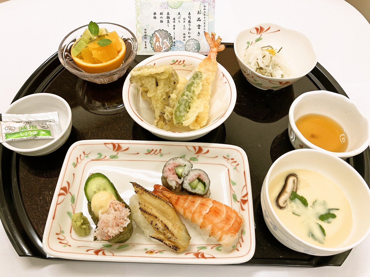 入院患者さんの多様なニーズにお応えするために、入院の標準食とは別に月1回、「特別メニューの食事」を用意し、ご提供しています。