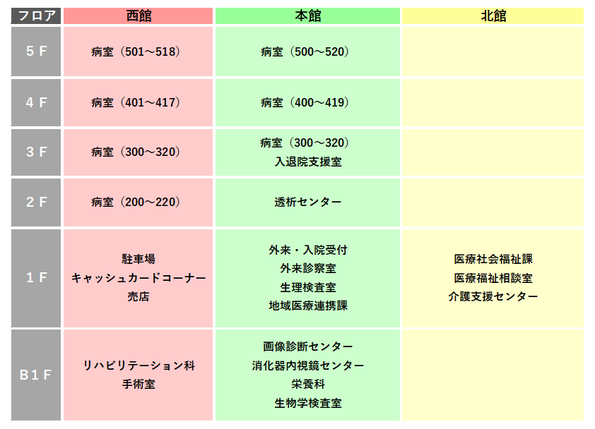 | 1階:(北館) | 医療福祉相談室を配置しております。 |